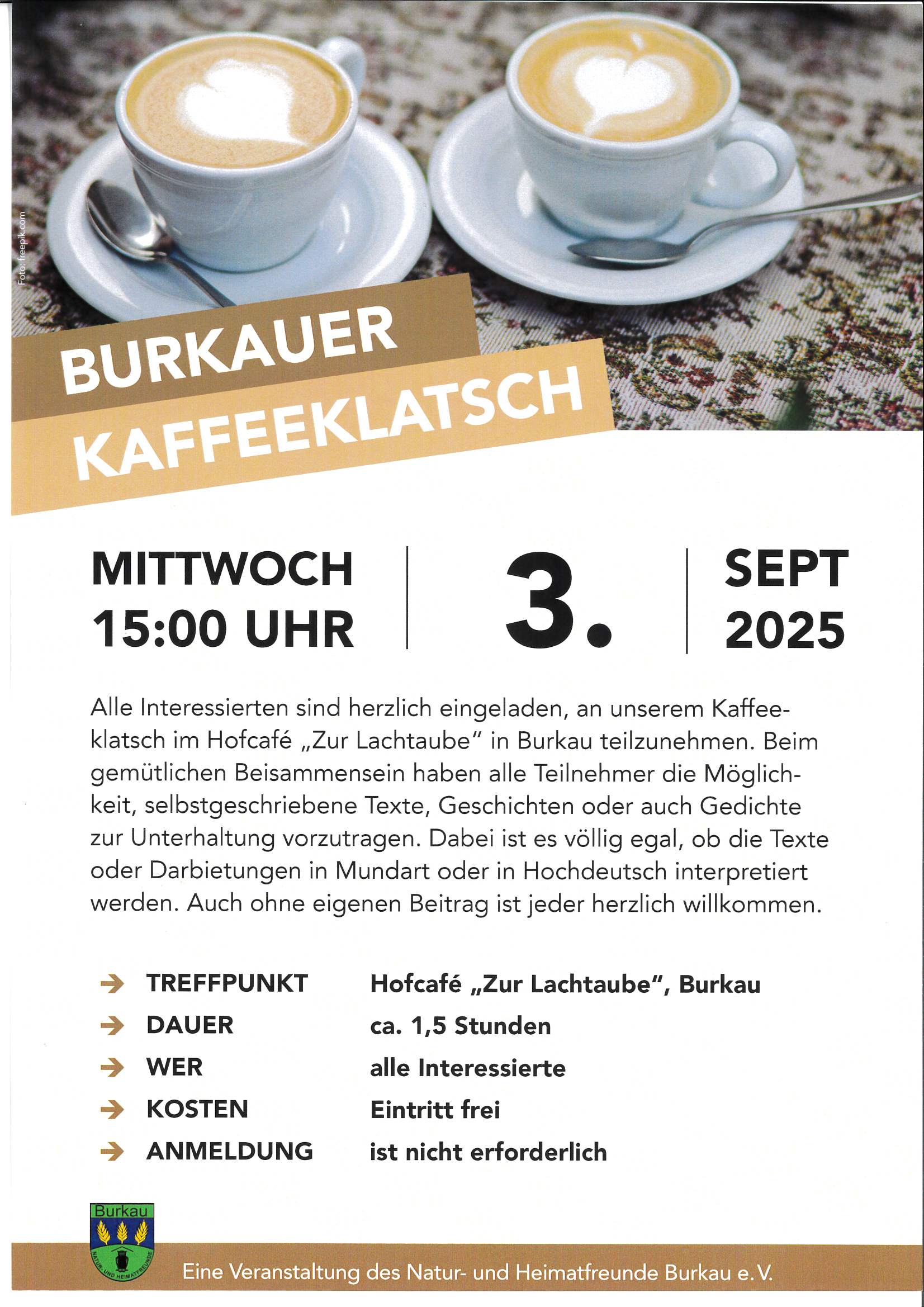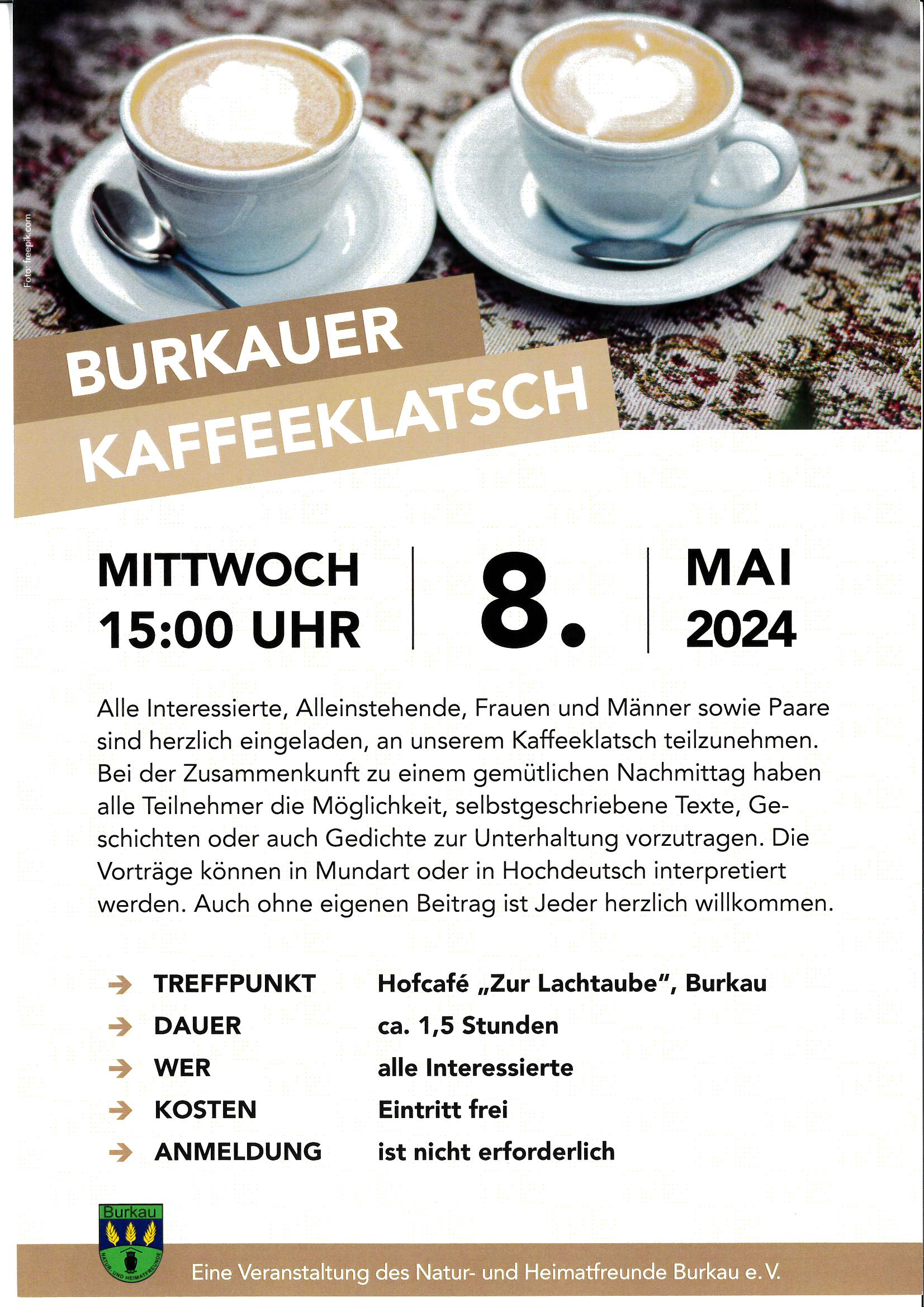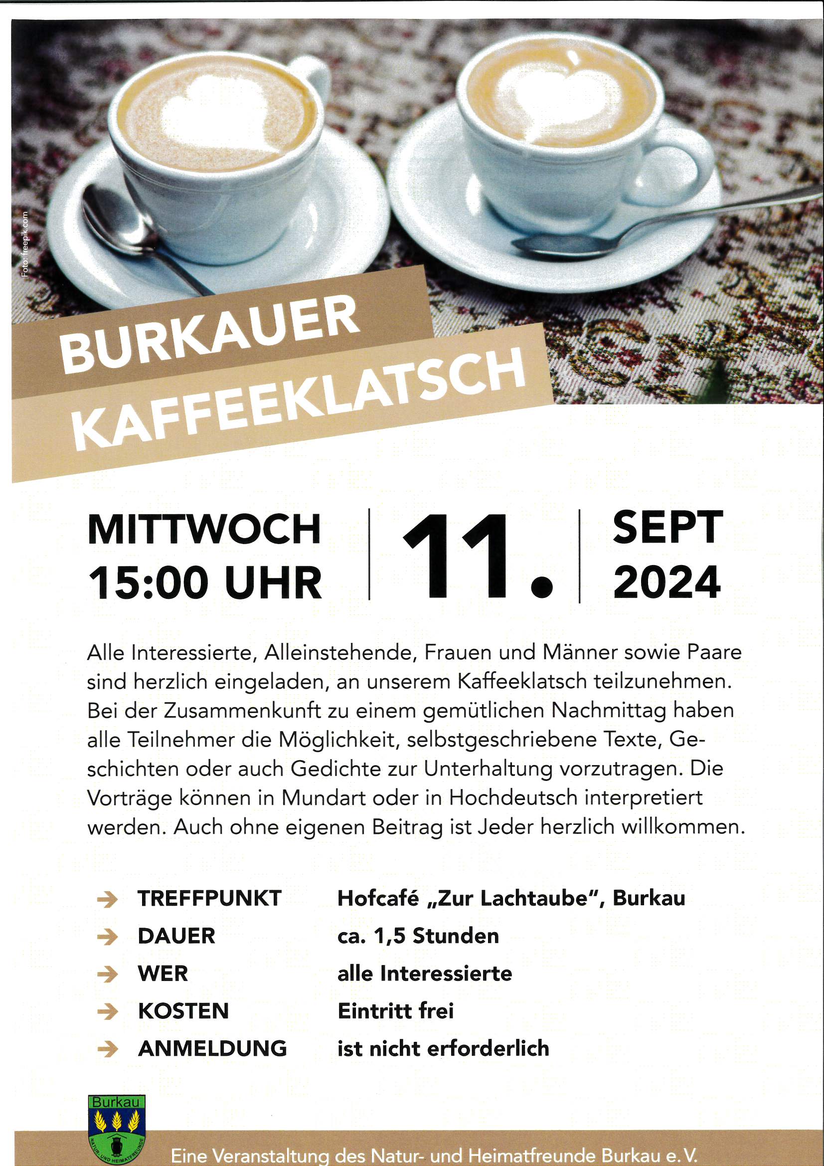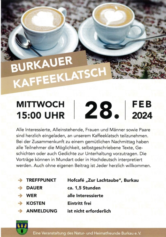 Die Heimatfreunde Burkau e. V. machen am 5.und 6.November 2022 wieder eine Hobbyausstellung im Bürgerhaus in Burkau. Geöffnet ist sie am Sonnabend dem 5. November von 13.00 bis 18.00 Uhr und am Sonntag den 6. November von 10.00 bis 17.00 Uhr. Gezeigt werden Arbeiten von Holzspezialisten, Textilarbeiten, Eisenbahnen, Uhren, Ostereiern, Streichholzsammlungen, Töpferarbeiten, Bilder von Mundartliteratur, Bauerhöfe, Pferde, Kunstschmiedearbeiten, Stickereien und vieles mehr. Auch das Kaffee -Liebling- ist wieder geöffnet mit Kuchen und Kaffee sowie Getränken. Merken sie sich den Termin vor. Die Ausstellung ist sehr vielseitig. Der Eintritt ist frei. Um eine Spende wird gebeten.