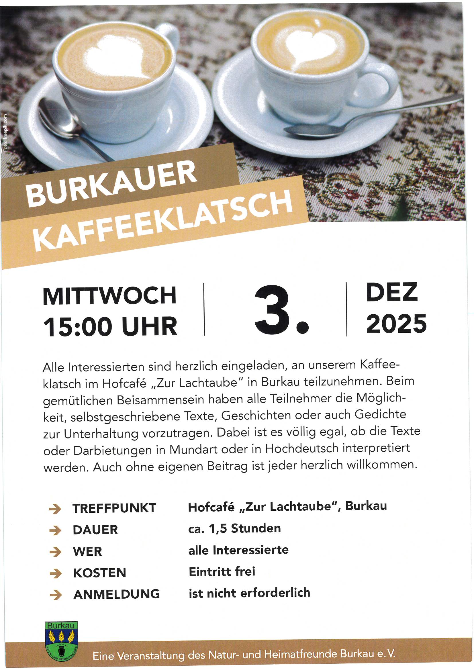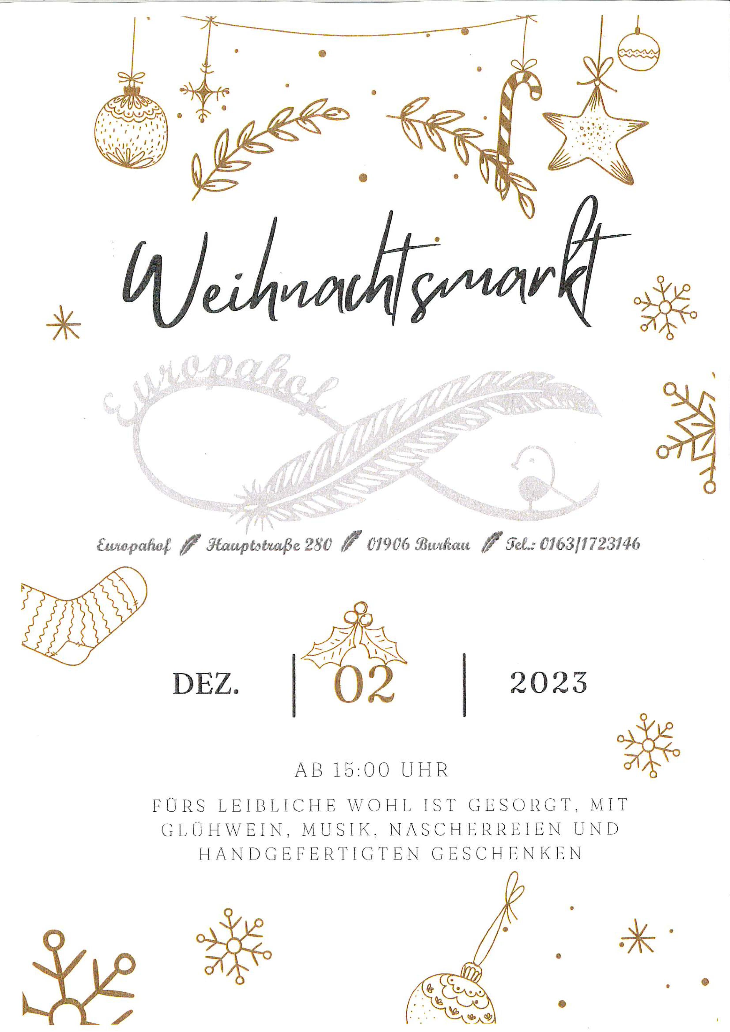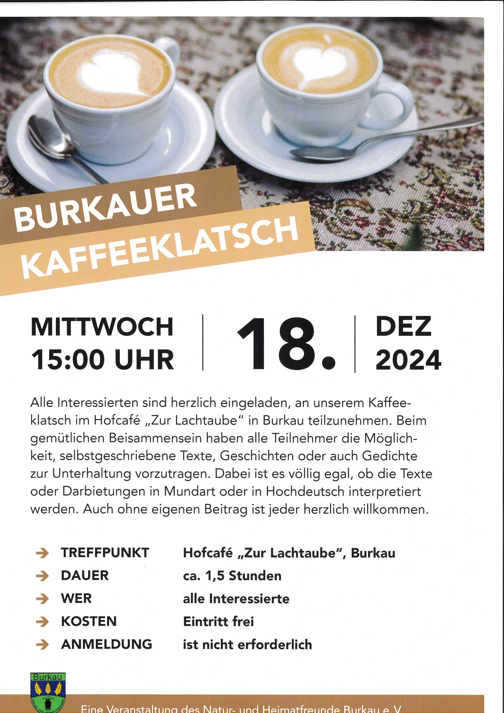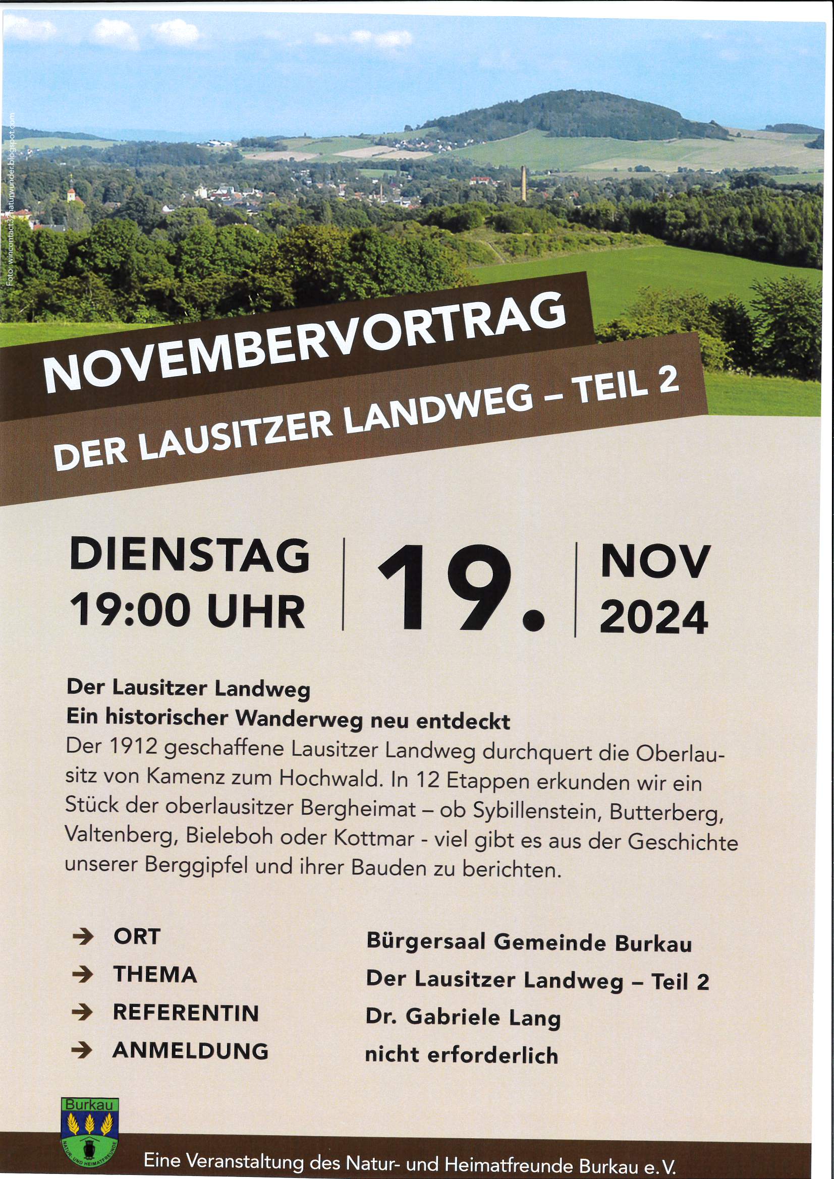 Die Heimatfreunde Burkau e. V. machen am 5.und 6.November 2022 wieder eine Hobbyausstellung im Bürgerhaus in Burkau. Geöffnet ist sie am Sonnabend dem 5. November von 13.00 bis 18.00 Uhr und am Sonntag den 6. November von 10.00 bis 17.00 Uhr. Gezeigt werden Arbeiten von Holzspezialisten, Textilarbeiten, Eisenbahnen, Uhren, Ostereiern, Streichholzsammlungen, Töpferarbeiten, Bilder von Mundartliteratur, Bauerhöfe, Pferde, Kunstschmiedearbeiten, Stickereien und vieles mehr. Auch das Kaffee -Liebling- ist wieder geöffnet mit Kuchen und Kaffee sowie Getränken. Merken sie sich den Termin vor. Die Ausstellung ist sehr vielseitig. Der Eintritt ist frei. Um eine Spende wird gebeten.