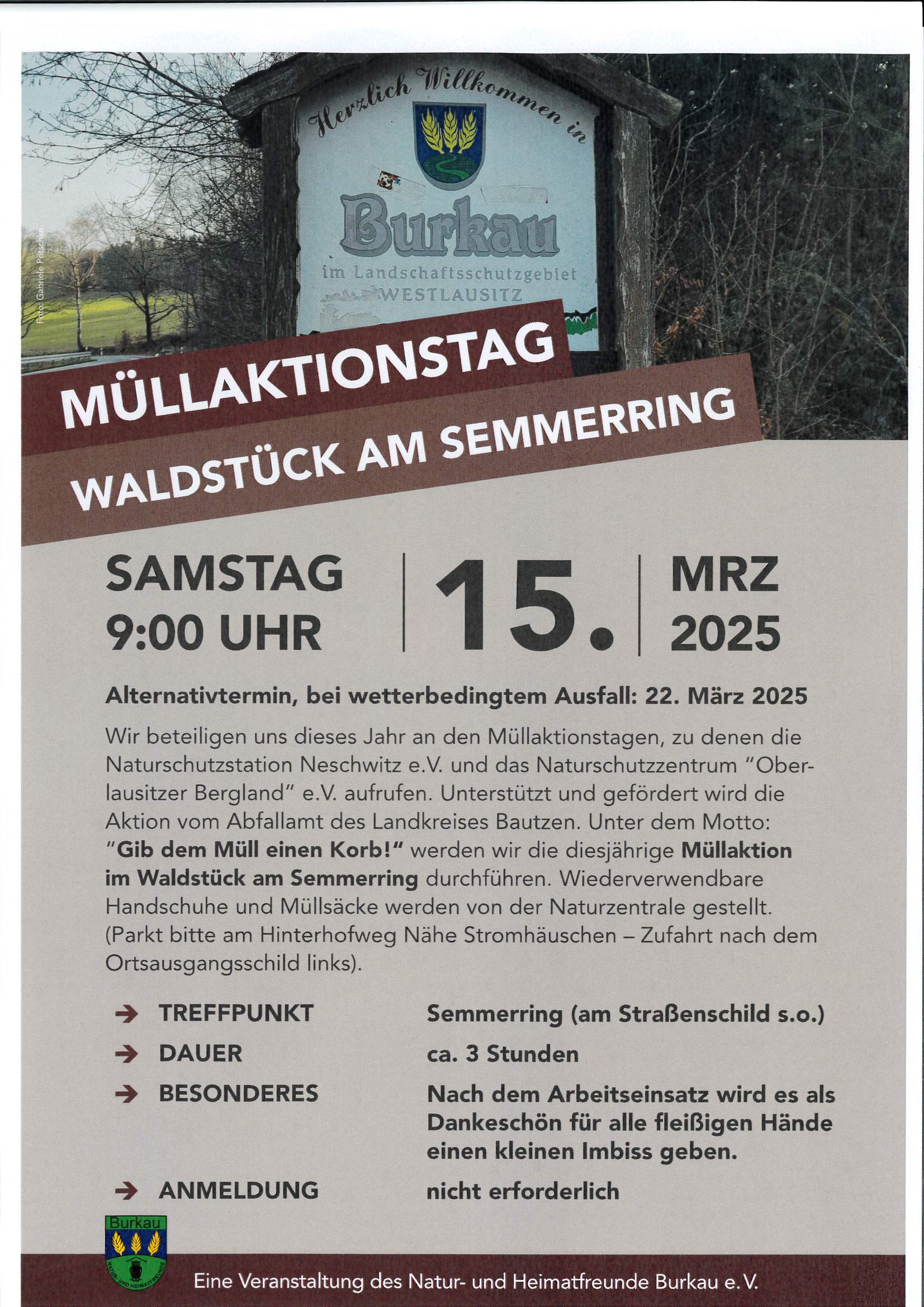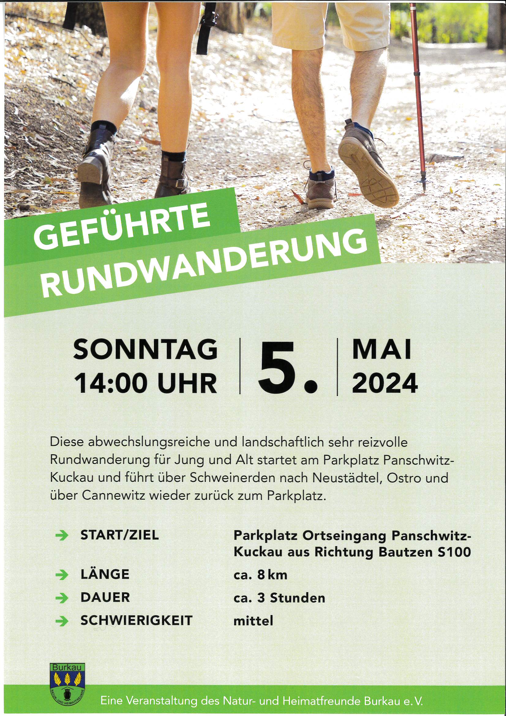 Weil das Wandern nicht nur des Müller´s Lust ist, lädt der Natur- und Heimatfreunde Burkau e.V. alle interessierten Bürger aus der Region recht herzlich zu einer geführten heimatkundlichen Wanderung in der westlichen Oberlausitz ein. Diese findet am Sonntag den 29. Mai 2022 statt. Start ist 13 Uhr auf dem Pendlerparkplatz an der A 4 - Anschlussstelle Burkau. Von dort geht es auf einer Streckenlänge von etwa 12 Kilometer zu den Quellen von Schwarzer Elster, Gruna, Großer Röder, Haselbach und Pulsnitz. Die Wanderung endet gegen 18 Uhr in Ohorn. Um eine eigenständige Organisation der Rückfahrt zum Startpunkt wird gebeten. Falls keine Möglichkeit besteht, bitte unmittelbar vor der Wanderung die Organisatoren vor Ort informieren. Die Verpflegung ist aus dem Rucksack vorgesehen. Am Forsthaus Luchsenburg wird eine etwa halbstündige Pause gegen durstige Kehlen eingelegt. Bei Dauerregen fällt die Veranstaltung aus.